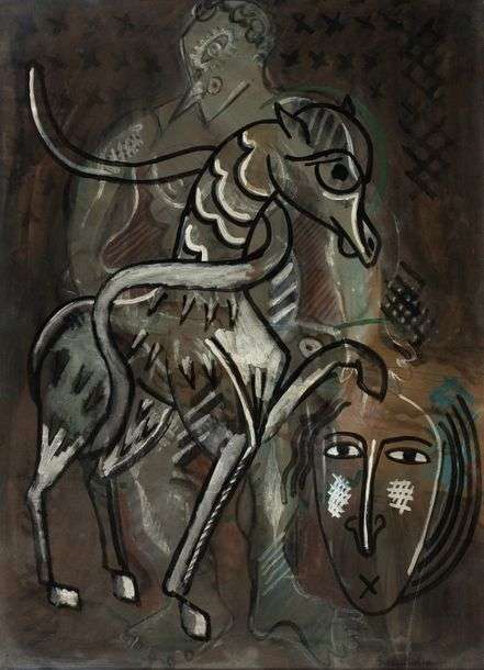Gouache, aquarelle et encre sur carton, signée en bas à droite