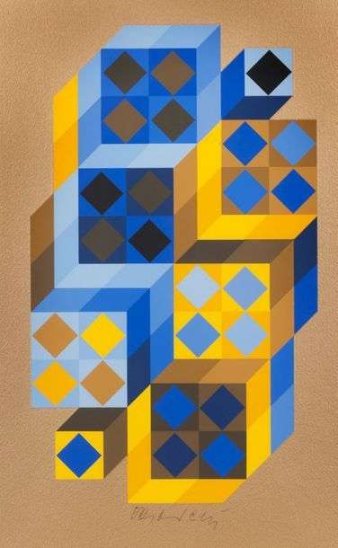 Nous remercions Pierre Vasarely d'avoir aimablement confirmé l'authenticité de cette oeuvre.Il s'agit d'un pochoir sérigraphié à faible tirage réalisé à l'occasion de l'inauguration du Musée Vasarely de Gordes| le 5 juin 1970.