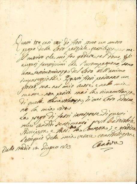 L.A.S. (au prince Borghèse). Dalla Studio (Rome), 12 juin 1813. 1 pp. in-4| en italien. Petite tâche.