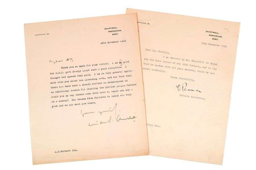 Joint: une lettre tapuscrite du secrétaire de Churchill (16 novembre 1936, 1 pp. in-4)