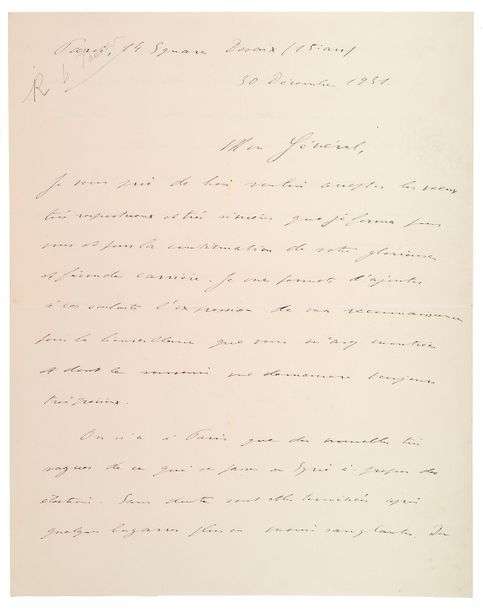 L.A.S. au général (Bigault de Granrut). Paris (14 Square Desaix), 30 décembre 1931. 2 pp. in-4, pli.
