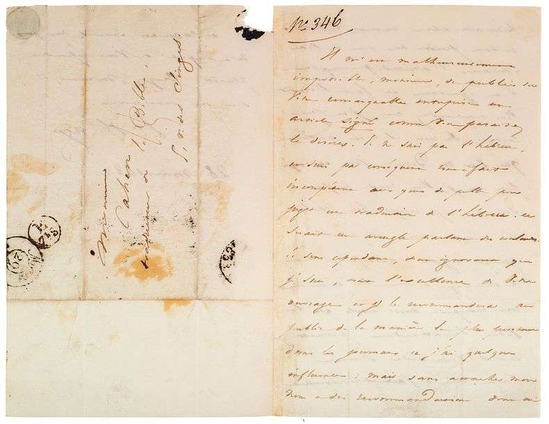 L.A.S. à Monsieur Cahen «traducteur de la Bible».S.l., 28 mars 1832. 2 pp. ½ bi-feuillet in-8, adresse au verso.