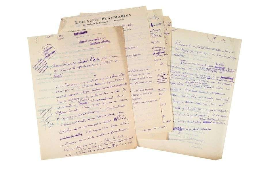 Manuscrit aut. S.l.n.d. 5 pp. in-4, encre violette au verso de texte dactylographié.