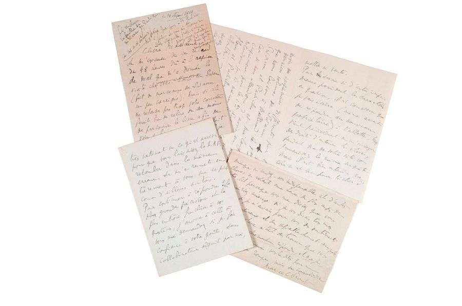 Magnifique lettre, longue de 16 pages, dans laquelle Proust fait part de ses réflexions sur son oeuvre et indique toutes les dernières modifications apportées à l'édition finale de la Recherche du temps perdu. Après la première édition de Swann en 1913 chez Grasset et ayant convaincu Proust qu'il lui confie la suite de la Recherche, Gaston Gallimard s'apprête à marquer un grand coup: en juin 1919, l'éditeur veut publier conjointement Du Côté de chez Swann, A l'Ombre des jeunes filles en fleurs et Pastiches et Mélanges. Cette longue lettre à Berthe Lemarié, collaboratrice de Gallimard, montre Proust s'attelant, en ce mois de février 1919, à corriger ces trois titres| il s'inquiète aussi de l'édition de luxe des Jeunes filles alors en gestation.