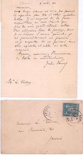 L.A.S. à M. Tridon. (Amiens), 1er octobre 1881. 1 pp. petit in-12| joint son enveloppe timbrée.