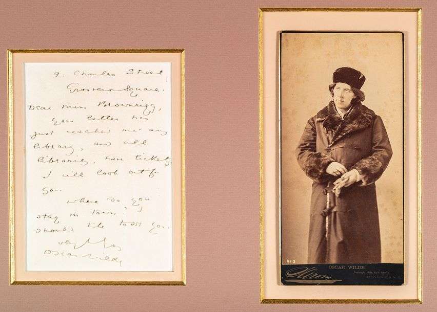 Encadré avec un portrait photographique original, représentant l'écrivain vêtu d'un manteau et coiffé d'une toque en fourrure, gants à la main. Tirage albuminé, contrecollé sur carton, du studio new yorkais N. Saroni (dimensions: H 20,6 x L 10,4 cm), portant en bas à gauche, gravé dans le négatif, «n°3» et la mention de copyright 1882