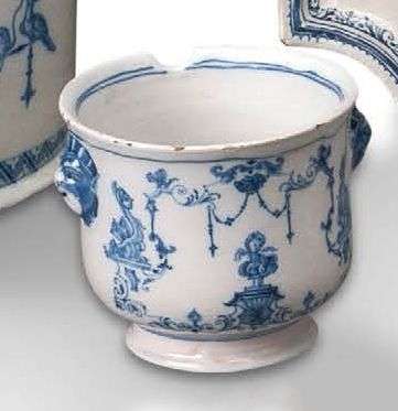 Paire de pots à olives décorés en camaïeu bleu de compositions «A la Bérain».
