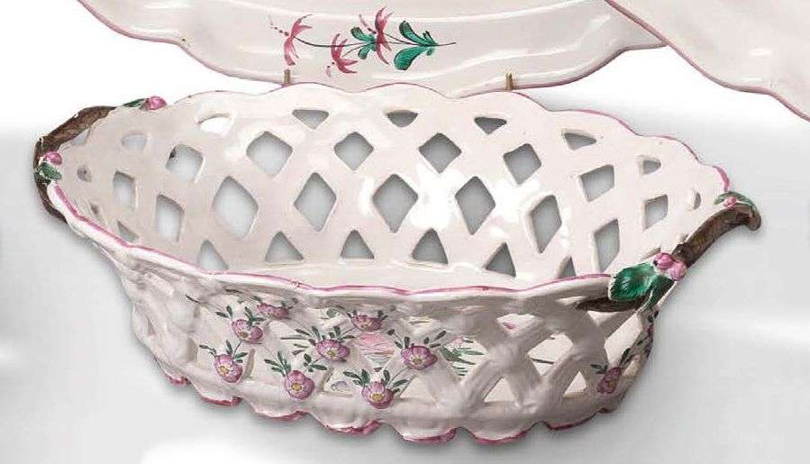 Bannette ajourée décorée en polychromie, sur le fond, et autour extérieur de motifs fleuris.