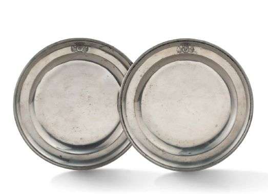 PAIRE D'ASSIETTES en étain aux armoiries sur l'aile (D'argent, à l'arbre a