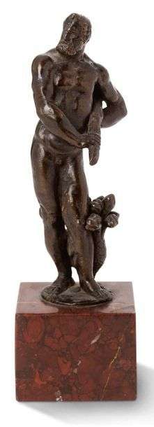 Épreuve en bronze à patine brune Socle carré en marbre griotte