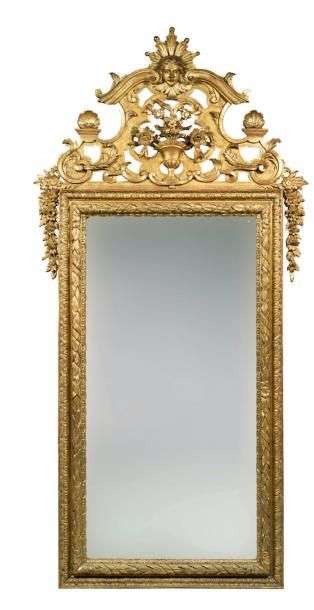 IMPORTANT MIROIR À FRONTON en bois mouluré, sculpté et doré.