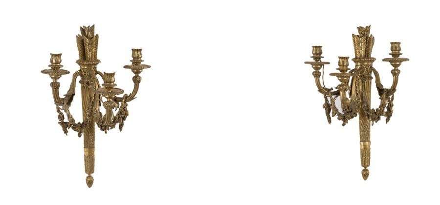 IMPORTANTE PAIRE D'APPLIQUE en bronze ciselé et doré, formé par un carquoi