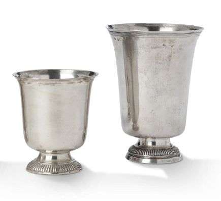 GRANDE TIMBALE de forme tulipe à filets reposant sur un piédouche godronné