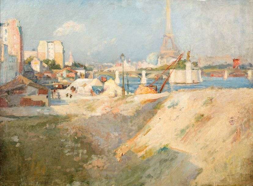 Tardieu nous est présenté souvent, si ce n’est toujours, comme l’auguste fondateur de l’Ecole des Beaux-Arts d’Indochine. C’est en effet ce qui fait la grandeur de son nom et assure sa postérité. Pourtant, les premières années de son parcours sont loin d’être dénuées d’intérêt et la vue du pont Mirabeau à Paris que nous présentons aujourd’hui en est la confirmation.