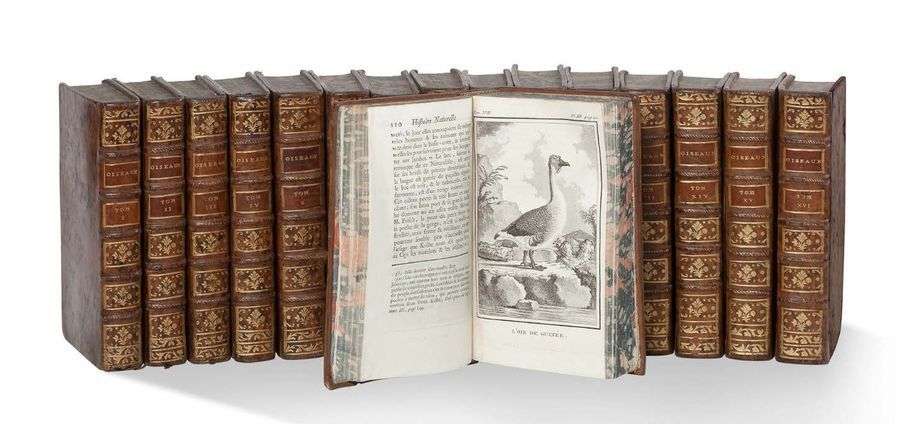 Histoire naturelle des oiseaux, 17 volumes sur 18 en partie originale. Manque le tome VII. Excellent état, exempte de toutes rousseurs.