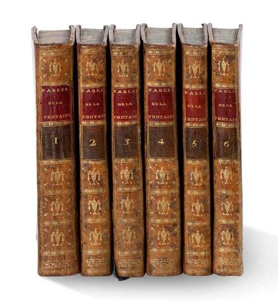 Célèbre édition des Fables, dite de Fessard, entièrement gravée en taille-douce sur cuivre par le graveur Étienne Fessard: frontispice, 6 titres gravés, 243 figures hors-texte et très nombreuses vignettes par Bardin, Bidault, Caresme, Desrais, Houël, Kobell, Leclere, Leprince, Loutherbourg, Meyer, Monnet