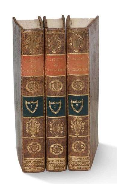 Histoire de Catherine II, Impératrice de Russie. Paris, F. Buisson, An VIII de la République [1800]. 3 volumes in-8, basane fauve, dos lisse orné, roulette dorée sur les coupes (Reliure de l'époque).