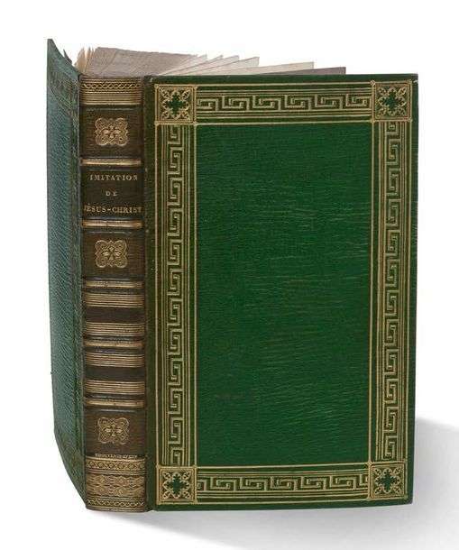 In-8, reliure maroquin à long grain vert, plats décorés d'un double encadrement de filets multiple et d'une frise à la grecque, dos à nerfs orné, avec grands fleurons angulaires, le tout doré, roulette intérieure, tranche dorée (Reliure de l'époque).