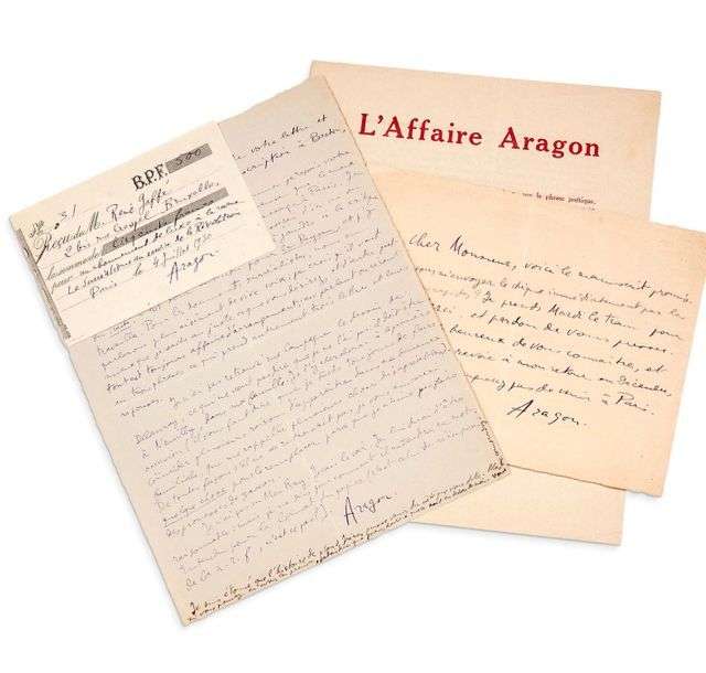Joint une pétition en faveur d'Aragon, inculpé pour son poème Front Rouge paru dans la revue Littérature de la Révolution mondiale| la pétition est à renvoyer à la direction du Surréalisme, rue Fontaine (3 pp. bi-feuillet in-4).