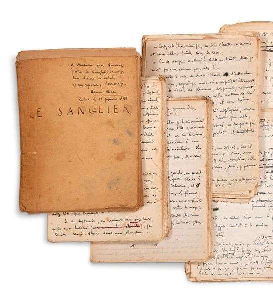 Epreuves et brouillon du premier grand roman d'Henri Bosco, le Sanglier, évocation mystique et autobiographiques de la Haute-Provence et en particulier du Lubéron, où règne «un climat pastoral, religieux et tragique».