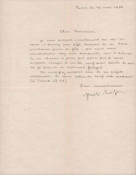 Proposition de rendez-vous au critique littéraire Bernard Delvaille qui travaille alors sur l'écrivain surréaliste Arthur Cravan. Breton lui propose de se rencontrer dimanche vers 4 heures dans le cas où Delvaille n'a pas déjà pris ses dispositions ces jours de fêtes. Je ne choisis ce jour que parce que je vous suppose occupé d'ici là, sauf sans doute le soir où je suis en ce moment fatigué. Ne modifiez surtout rien de vos projets antérieurs (...).