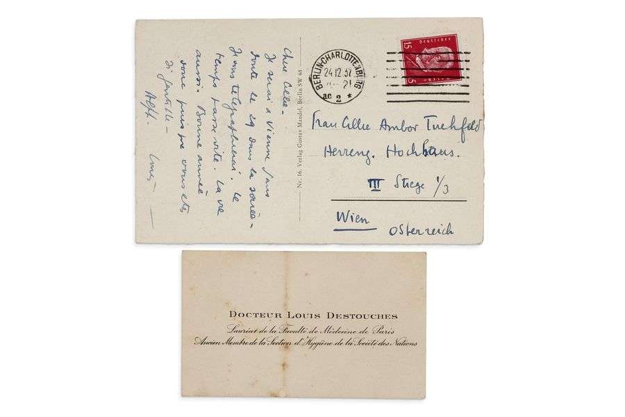Carte adressée à son amante Cillie Ambor-Tuchfeld. Celine lui annonce qu'il sera à Vienne sans doute le 29 dans la soirée (...) Je vous télégraphierai. Le temps passe vite. La vie aussi. Bonne année donc puisque vous êtes si gentille (...).