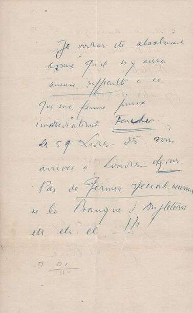 A propos de la vente d'une réédition de son Voyage au bout de la nuit dans une traduction anglaise (Journey to the end of the night). Je suis très content d'apprendre que Journey se vend un peu et que je possède chez vous un crédit de 59£. Je vous demande de garder cette somme à ma disposition chez vous (...) Ma femme Lucie Georgette Destouches née Almanzor se rendra à Londres pour y passer une dizaine de jours en janvier prochain. Je voudrais que teniez à sa disposition à Londres cette sommes pour les frais de son voyage (...). Ma femme est danseuse classique et elle veut aller à Londres voir les ballets classiques: Sadlers Wells (...). Il lui demande de lui adresser un plan de Londres| Elle ignore la ville et l'Angleterre mais parle un peu anglais (elle a dansé en USA). Pensez vous publier Death on installment Plan? il se vend très bien en Amérique. Il se serait bien vendu en Angleterre s'il n'avait pas été saboté. Je n'irai pas à Londres avec ma femme j'ai trop de travail ici avec mon prochain roman (...).