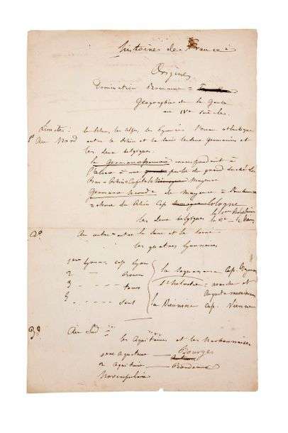 Manuscrit aut. «Histoire de France, Origines». S.l.n.d. 1 p. ¼ in-folio.