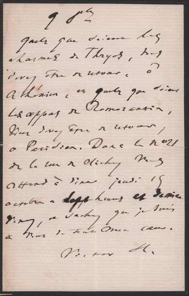 L.A.S. «Victor H.» S.l., 9 octobre. 1 p. in-8 liseré de noir| trace de montage.