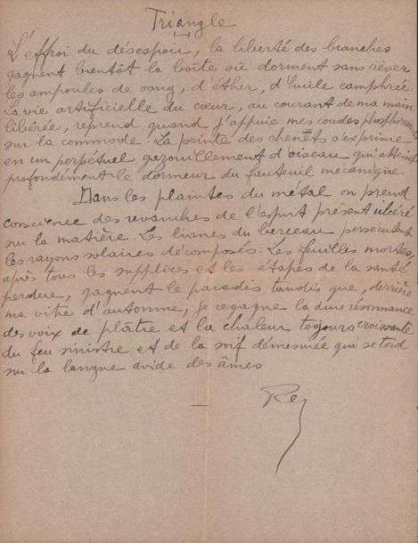 Manuscrit aut. signé «Triangle». S.l.n.d. 1 p. in-4.