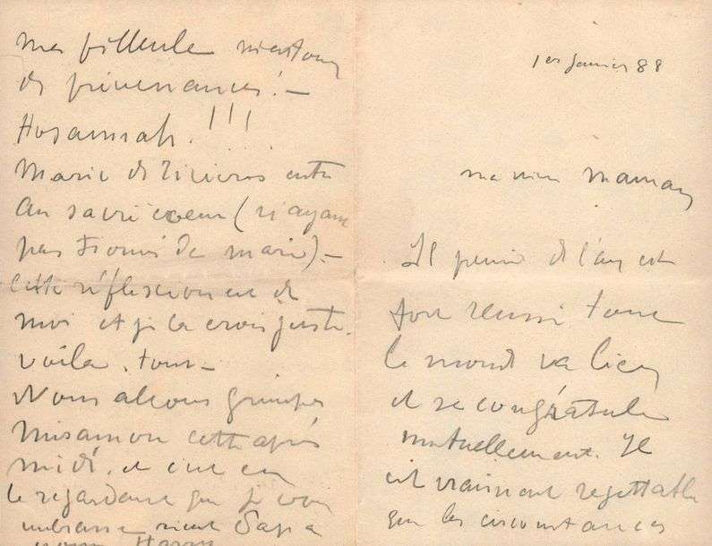 L.A.S. «Yours Harry» à sa mère. S.l., 1er janvier 1888. 4 pp. bi-feuillet in-12.