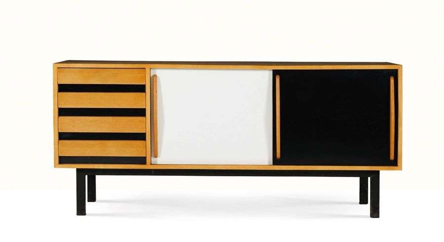 Cabinet from Cité Cansado Ribbon oak, laminate, enameled steel 29.92 x 61.81 x 17.72 in.