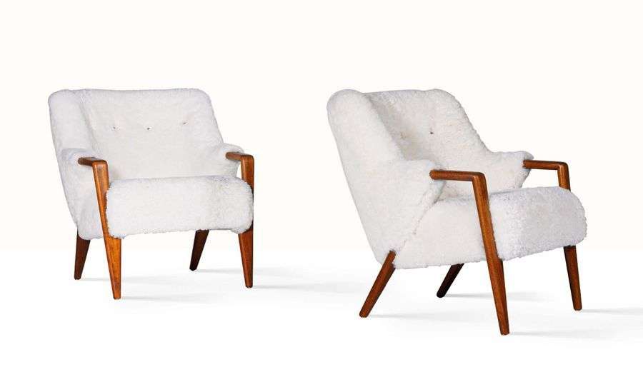 Peau de mouton, teck 79.5 x 68.5 x 64 cm.