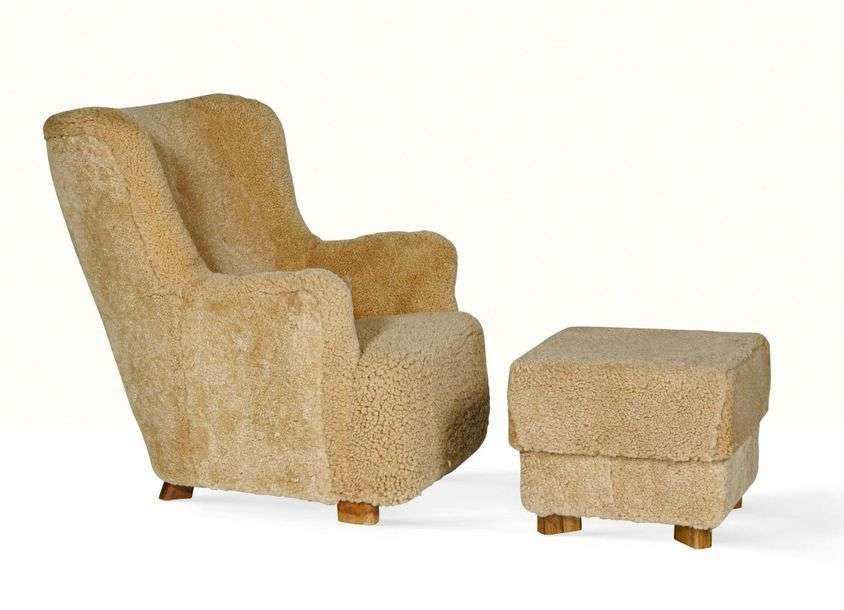 Sheepskin, beech 34.25 x 31.5 x 38.19 in.| 14.57 x 18.9 x 18.9 in.