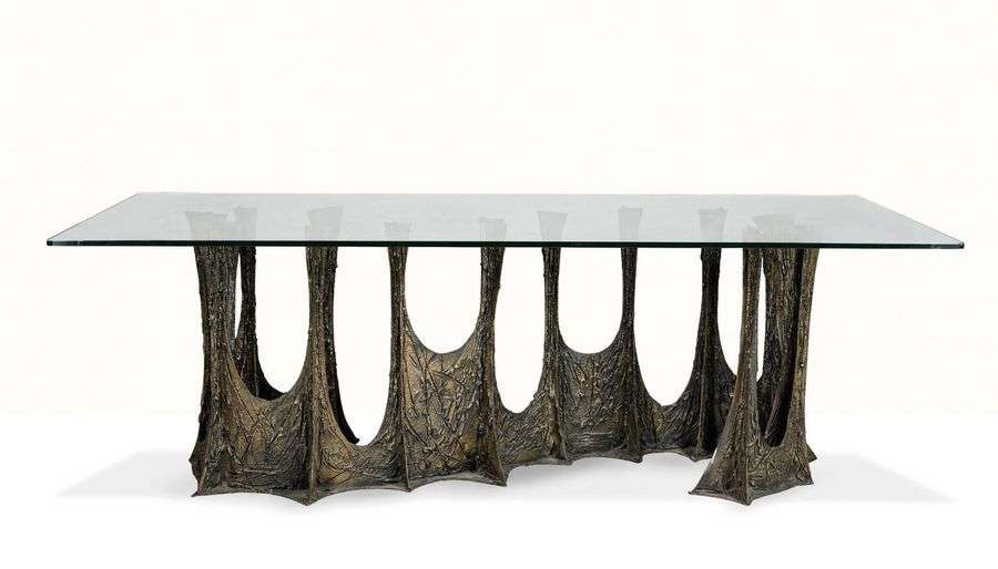 Bronzed resin over steel, glass 29.13 x 86.61 x 45.67 in.