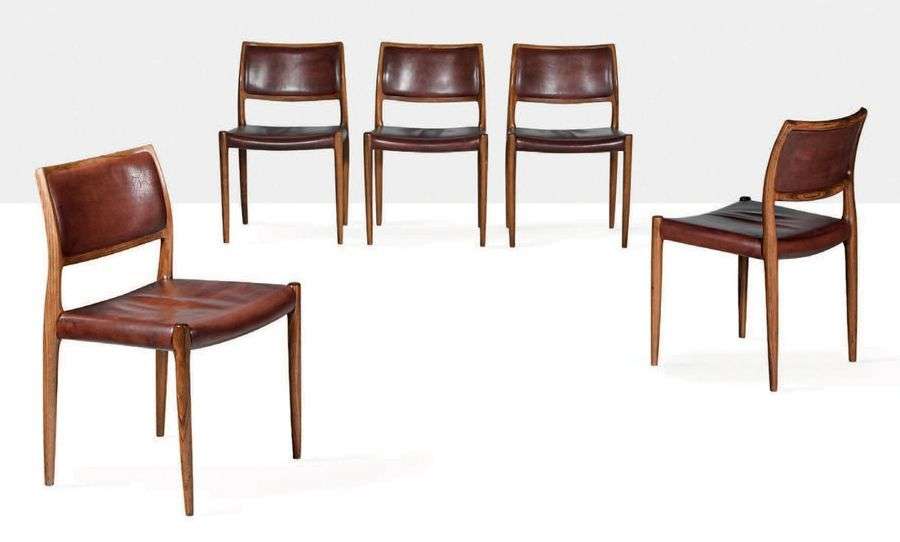 Suite de 5 chaises dites 80