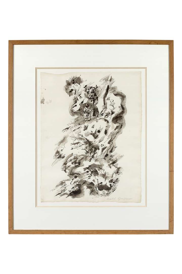 Indian ink and wash on paper, signed lower right~