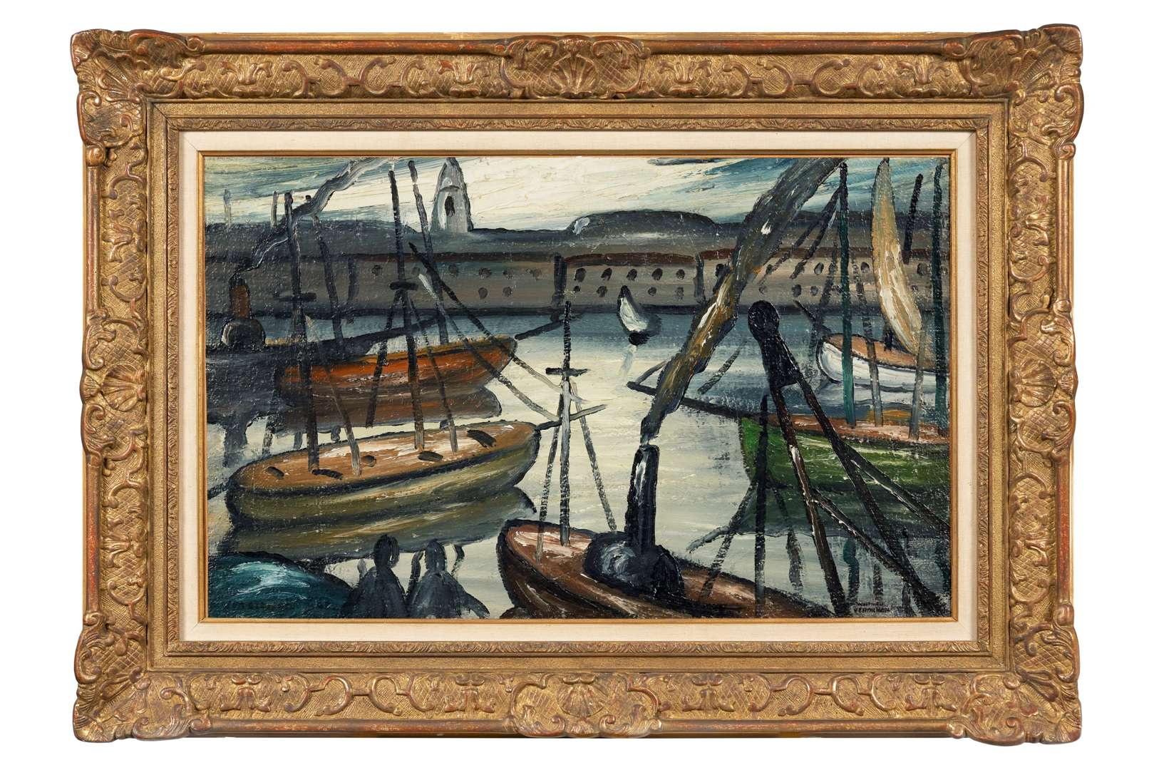 Oil on lined canvas, signed lower right, traces of signature lower left~