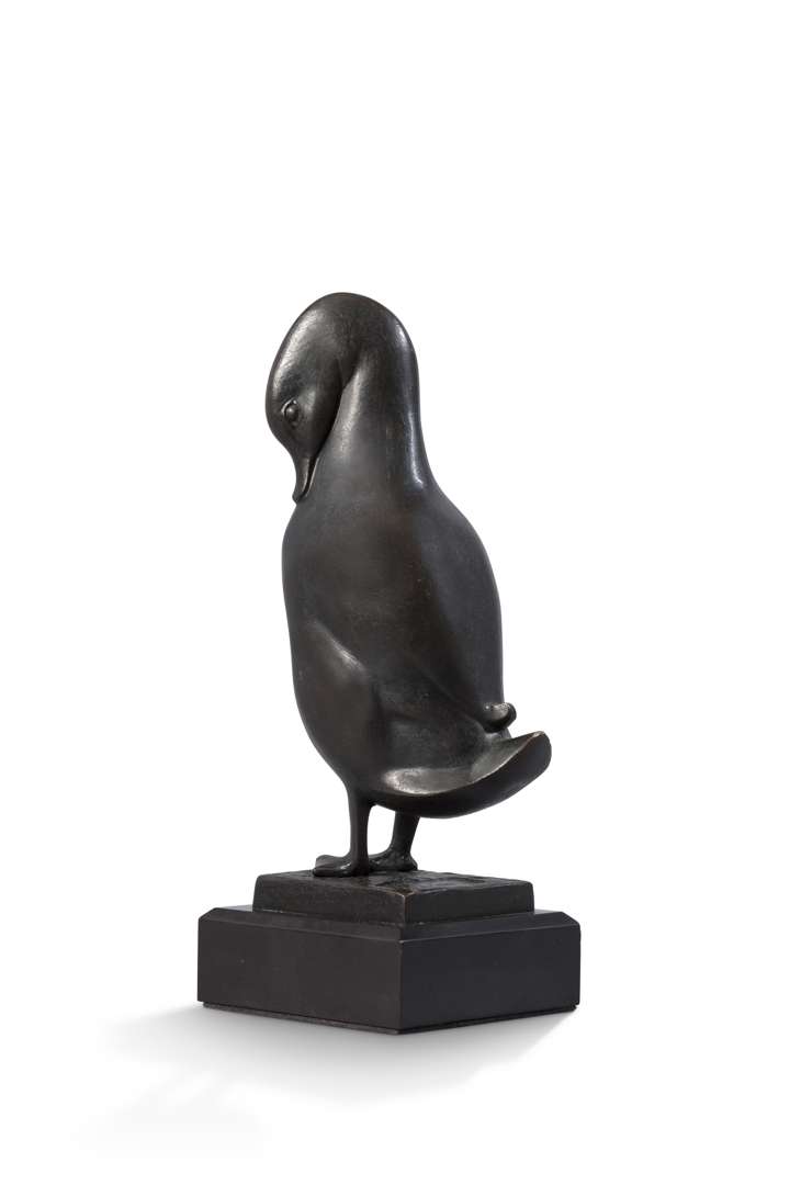 Bronze with black patina, signed with no foundry mark, stand in black Belgian marble~