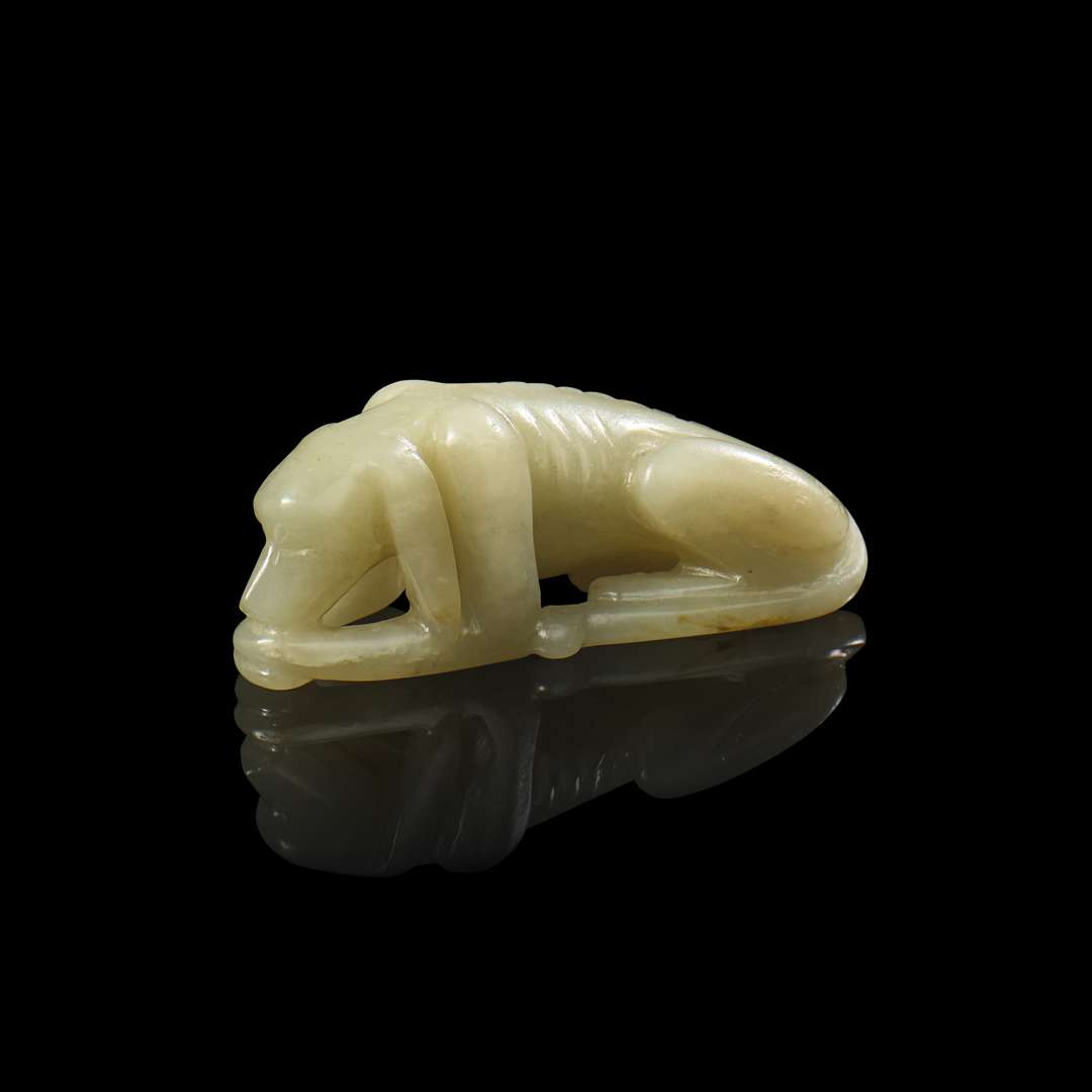 Jade céladon sculpté figurant un chien couché.