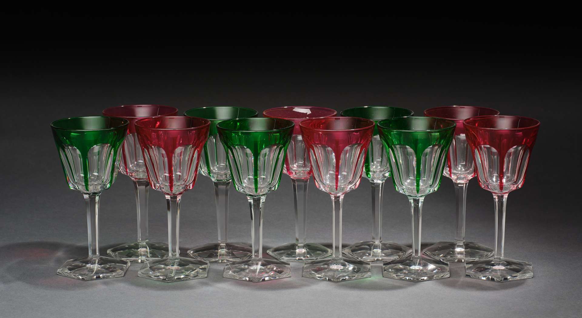 Suite de onze verres à vin en verre overlay, modèle Harcourt.