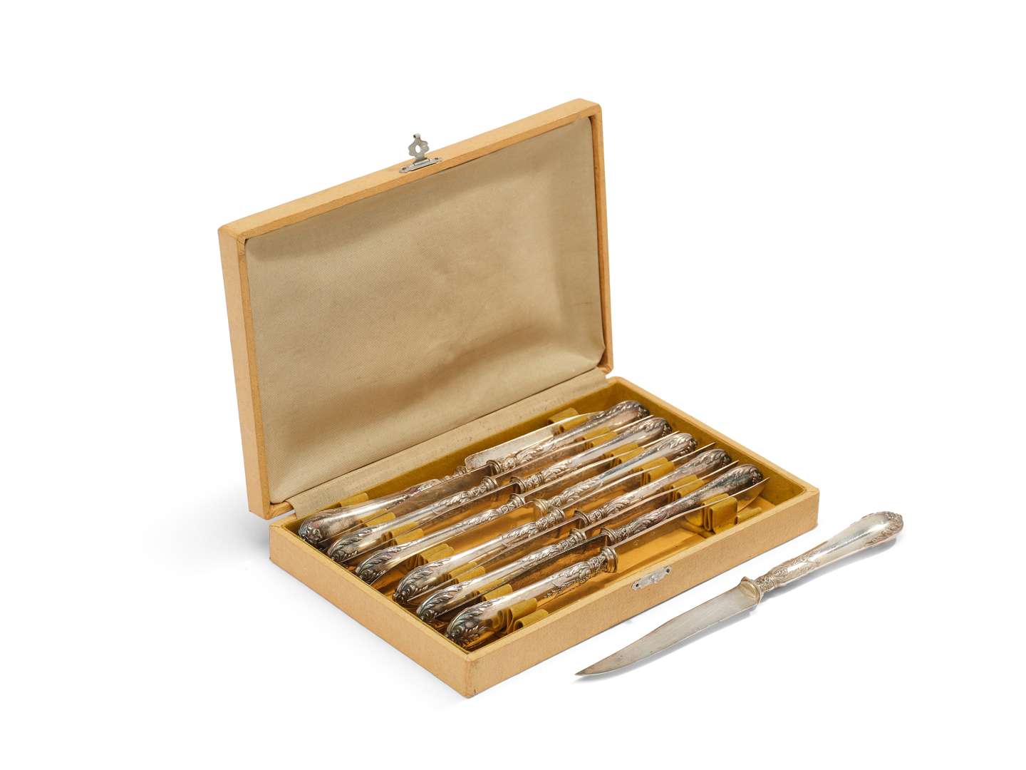 en argent fourré, les lames en argent. Les manches de style rocaille.