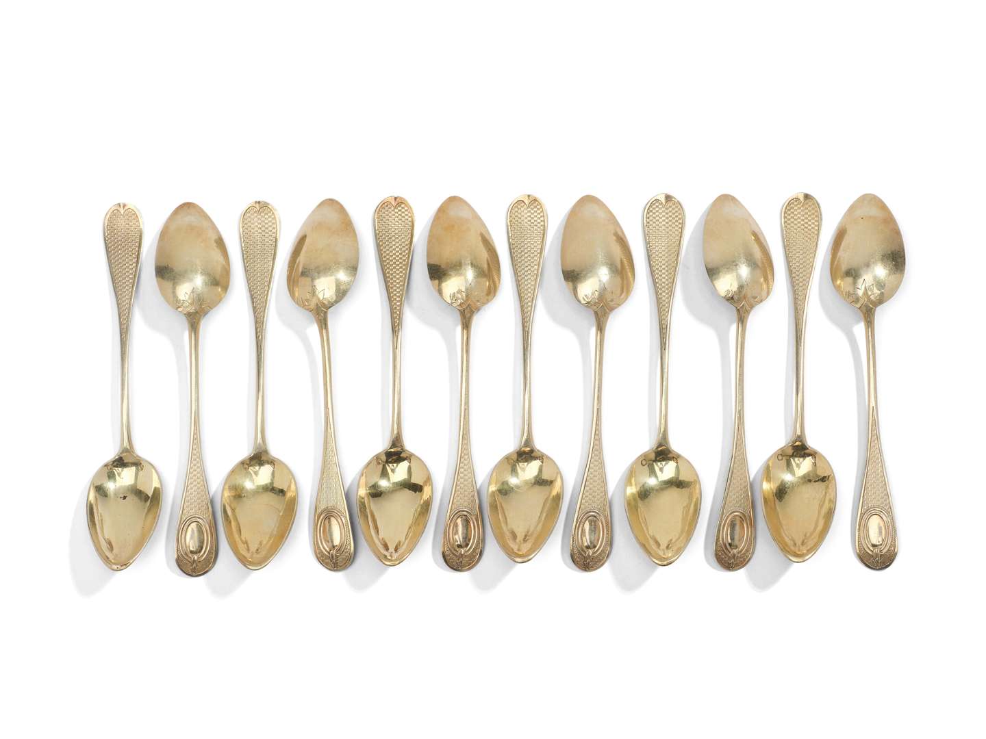 en argent 800°/°°, à modèle filets. Les spatules à décor guilloché et ornée d'un cartouche à l'intérieur uni.