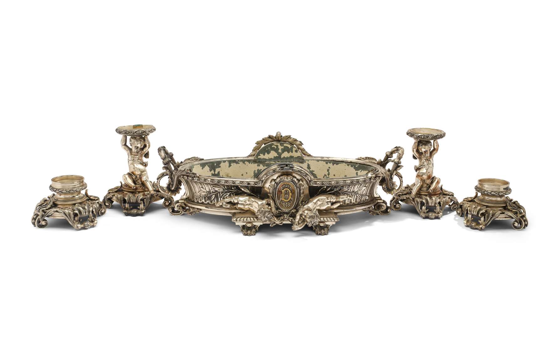 en bronze argenté à riche décor ciselé. Comprend :