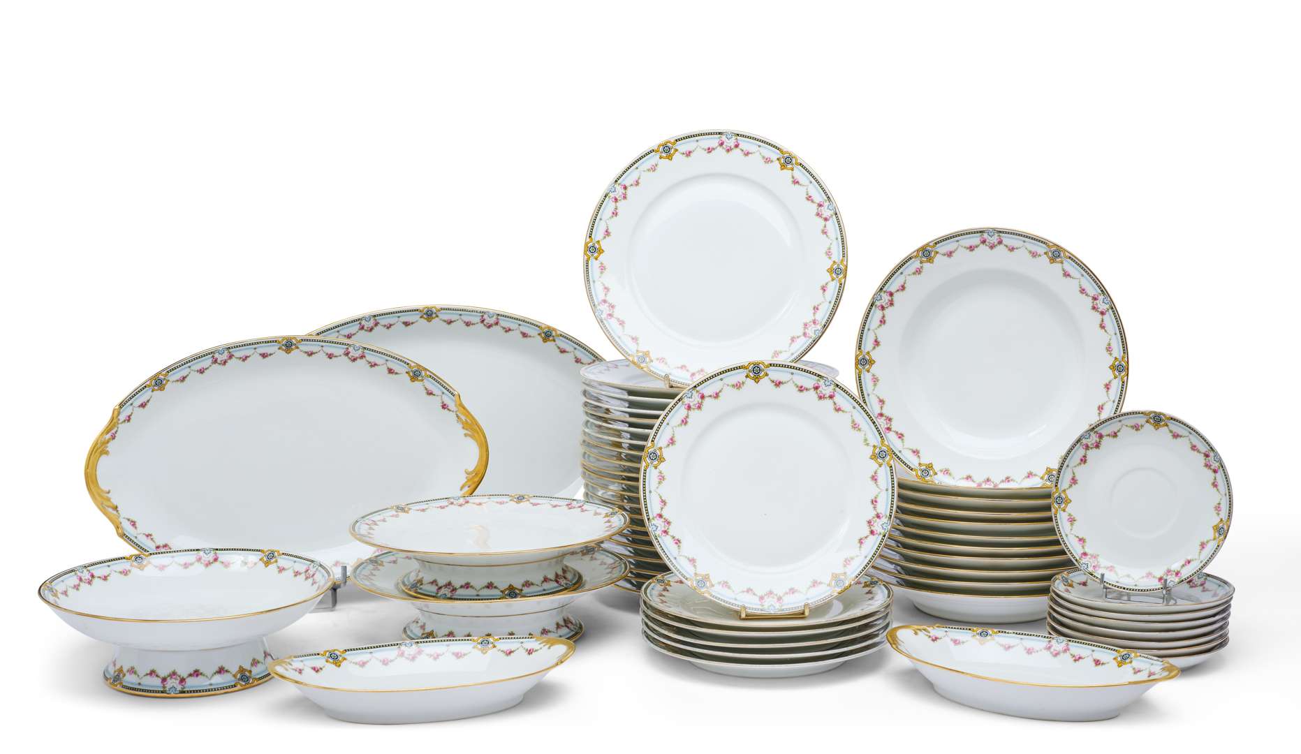 Partie de service en porcelaine blanche à décor peint polychrome de style Louis XVI.