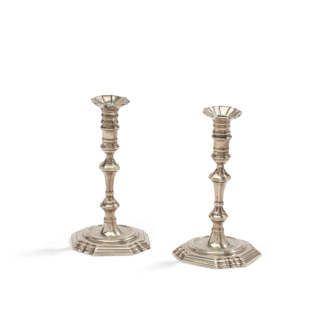 en argent. Les fûts de forme balustre et les bases octogonales à doucine.