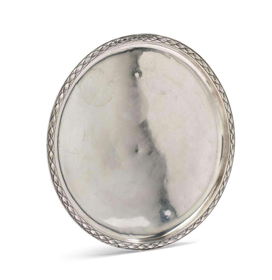 en argent, la bordure ornée d'une frise de feuilles d'eau.