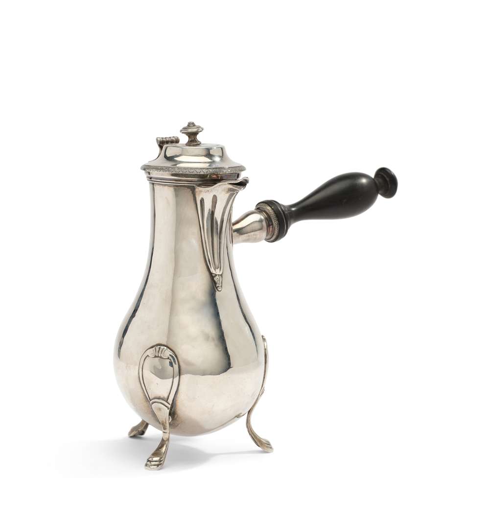 Le couvercle à décor d’une frise de palmettes et bec verseur canelé. La panse unie.