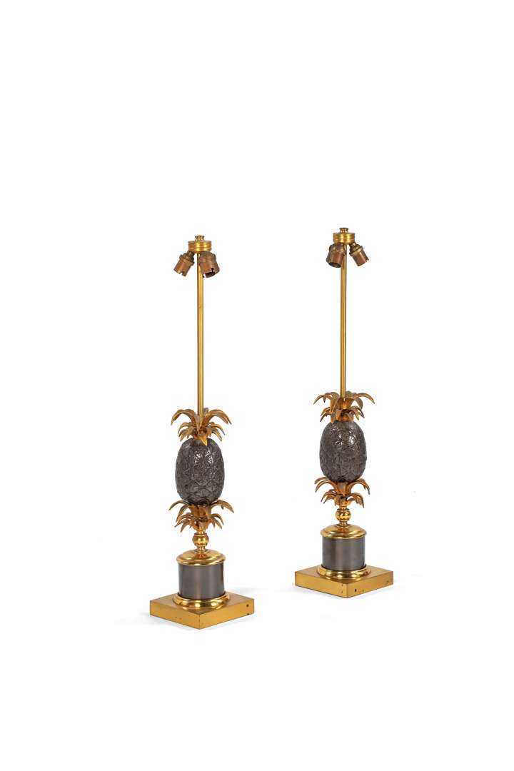 A pair of lamps, c. 1970, brown patinated bronze and brass.