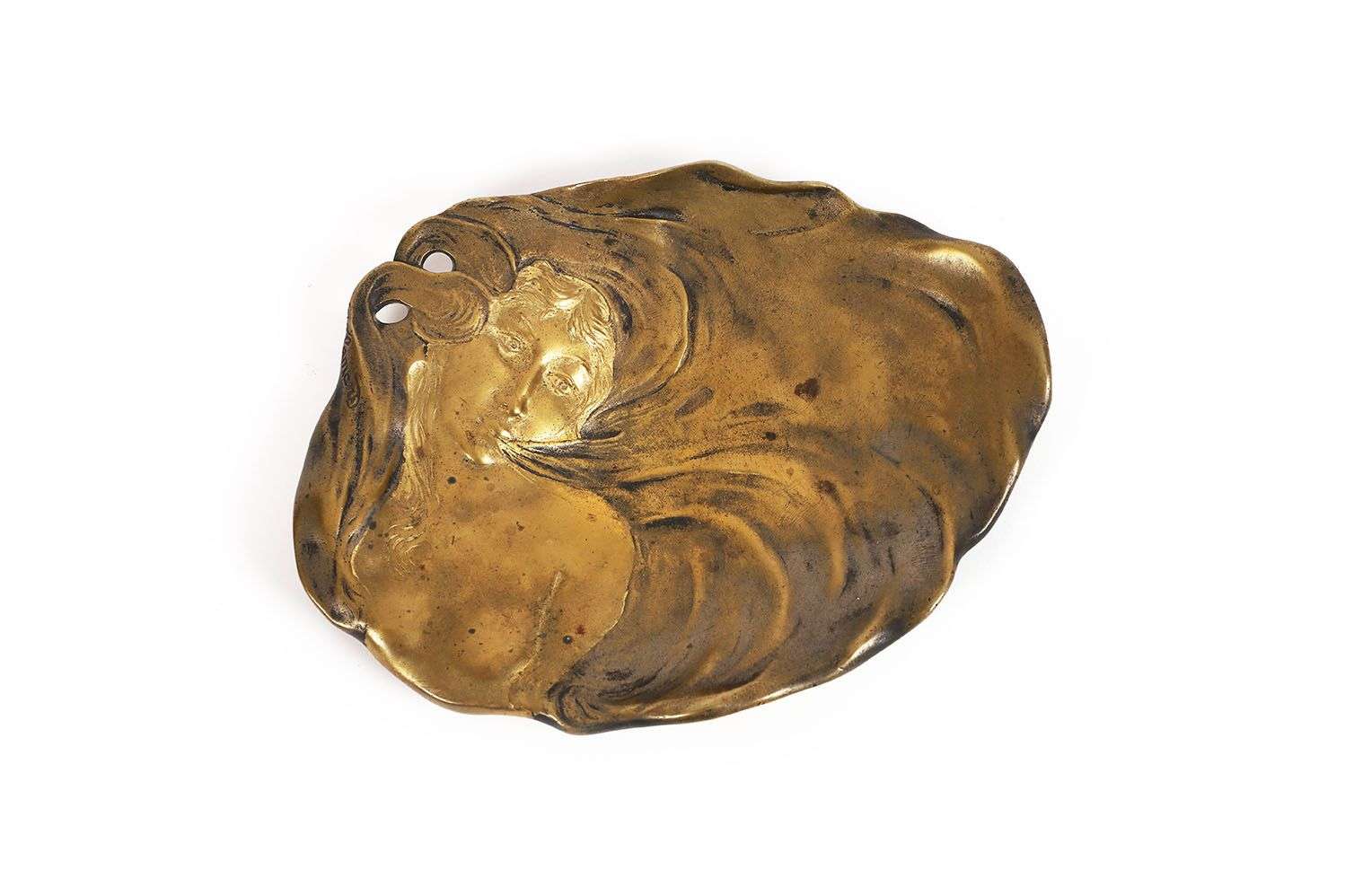 En bronze à patine dorée nuancée, figurant un buste de femme.